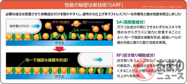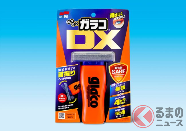 「ぬりぬりガラコDX」は2022年3月1日に発売された、「シリーズ史上最高レベルの撥水性」を謳う新商品です。約4か月持続する耐久性はもちろん、新開発の「首振りヘッド」と「ワイドスクエアフェルト」で塗りムラを抑制し、ガラスの隅々までしっかり塗ることのできる快適な作業性が特徴といいます。