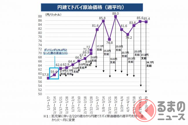 これを受け補助金の支給単価は31.8円でしたが、あす5月12日からは34.7円に引き上げる方針です。