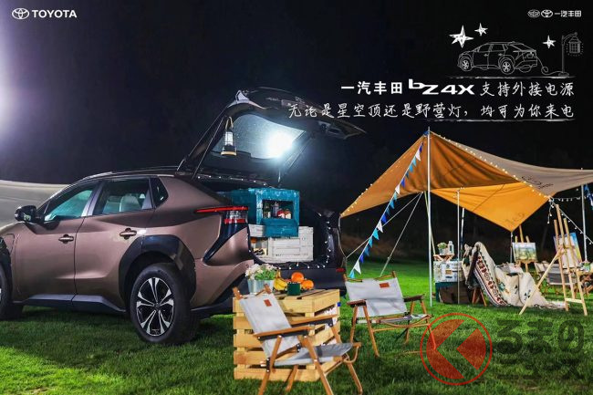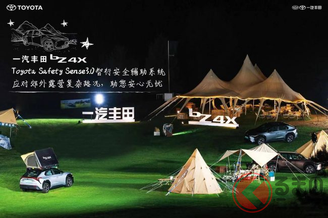 トヨタ新型SUV「bZ4X」で本気アウトドア!? 電気も使えちゃう快適キャンプを一汽トヨタが中国で提案
