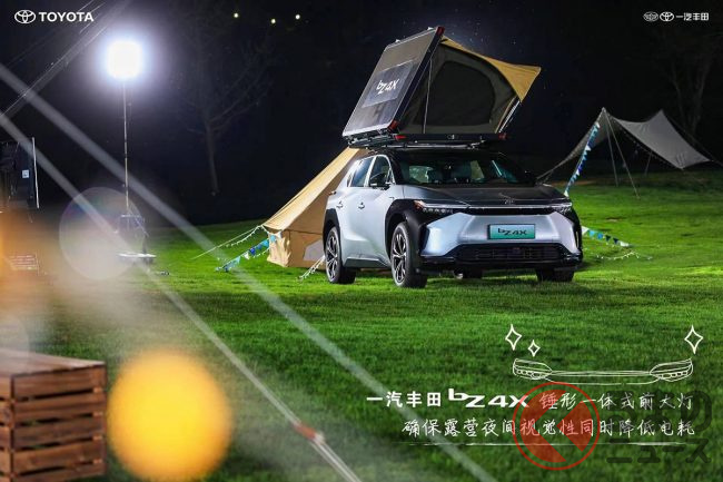 トヨタの中国における合弁会社「一汽トヨタ」が、新型「bZ4X」を用いた快適キャンプスタイルを公式SNS(Weibo)で紹介しています。