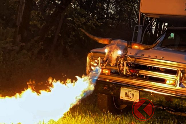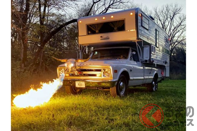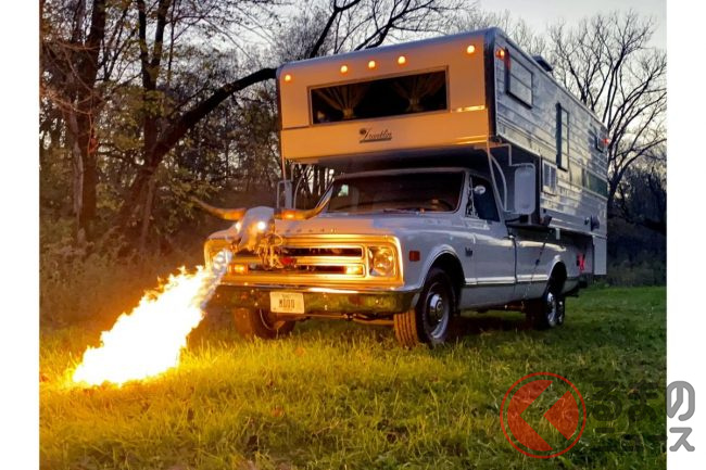 マジ!? 「火を吹くキャンピングカー」爆誕! 火炎放射器搭載のナイスガイな奴が話題に! 意味不明ながら560万円で落札!