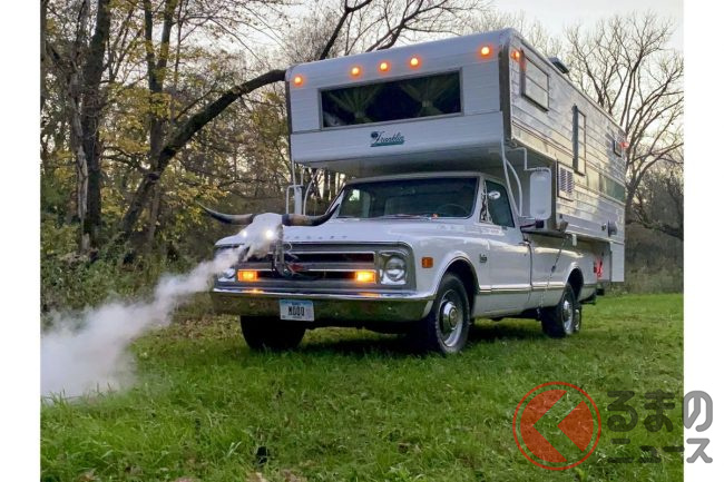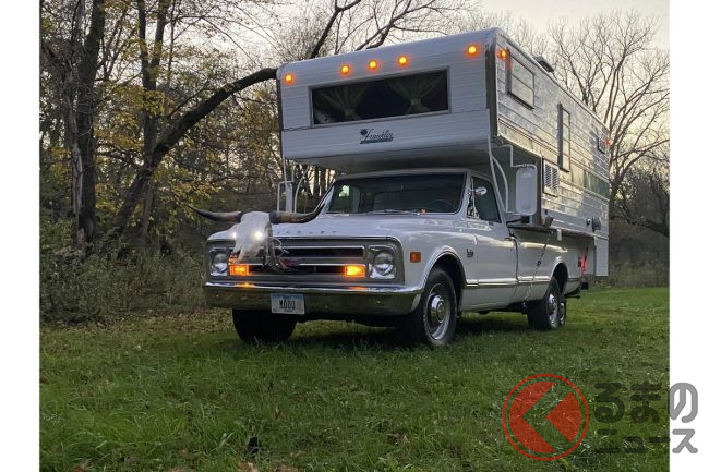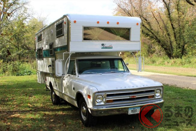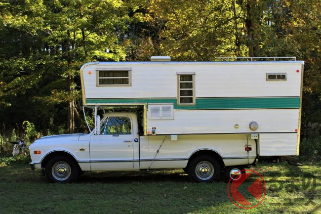 自動車専門オークションサイト「BRING A TRAILER」に出品された1968年式のキャンピングカーは、一見すると、ピックアップトラックをベースにしたオーソドックスなキャンピングカーのように見えます。