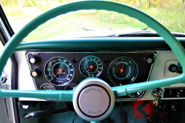 ほぼオリジナルの状態が維持されており、心臓部には396立方インチ(約6500cc)のV8エンジンが搭載され、4速MTが組み合わされます。4輪すべてでドラムブレーキとなっている点もオリジナルのままです。