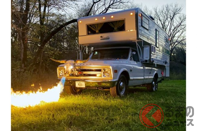 日本ではキャンプや車中泊の人気に伴いキャンピングカーの需要も伸びています。そうしたなかでキャンピングカーの本場といえるアメリカでは火を吹くキャンピングカーがオークションに出品されました。