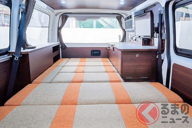 軽自動車から大型バンのキャンピングカーまでさまざまなモデルがあり、ベッドやシンク、トイレなどが装備されたコンプリートカーでなくても、車中泊に不自由ない装備を備えた「キャンパーカスタム」も人気です。