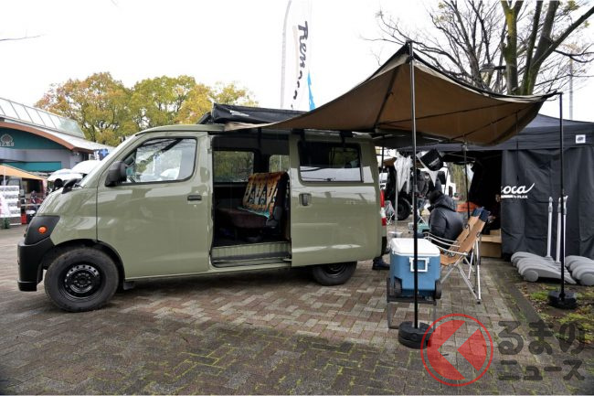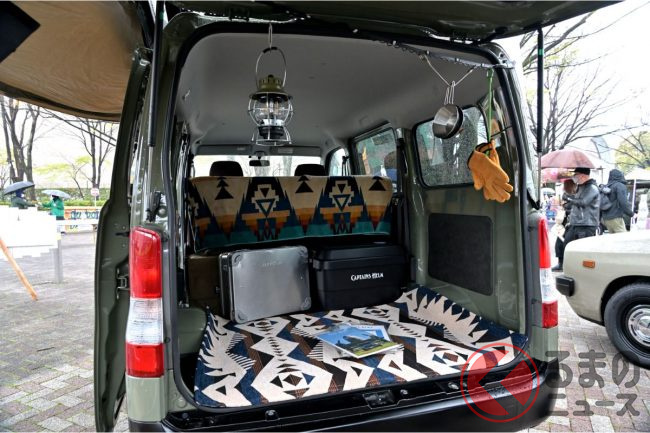 レトロ仕様のトヨタ「タウンエース車中泊」がアツい! 丸目ライト&黒エンブレムで女子人気も!