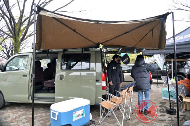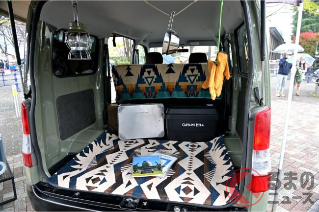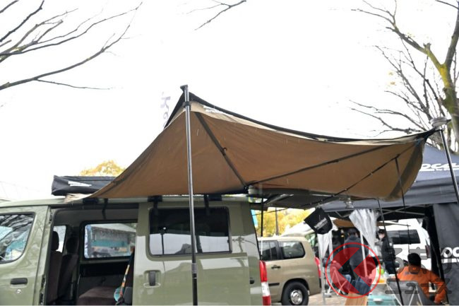 そのほか、投稿された写真ではルーフキャリアやサイドタープが取り付けられているようで、気軽にキャンプや車中泊が楽しめる仕様になっているようです。