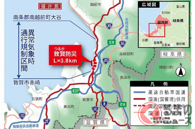国道8号の「敦賀防災」事業の起工式が、2022年5月22日に開催されます。福井県敦賀市内で計画が進んでいるこの事業は、どのような計画なのでしょうか。