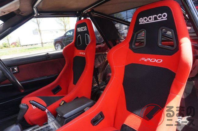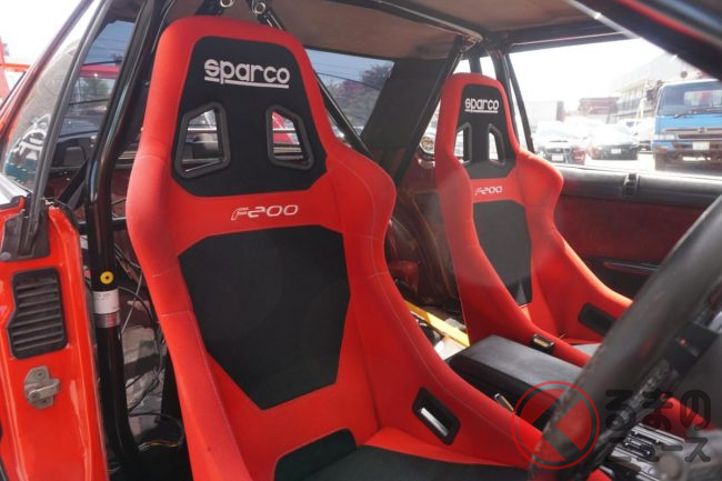 心臓部に搭載された、2000ccの水冷4ストローク直列4気筒4バルブDOHCにターボチャージャーを追加した「FJ20ET型」エンジンもしっかりと整備されているほか、室内にはロールバーが組まれており、シートもスパルコのシートへと交換されています。