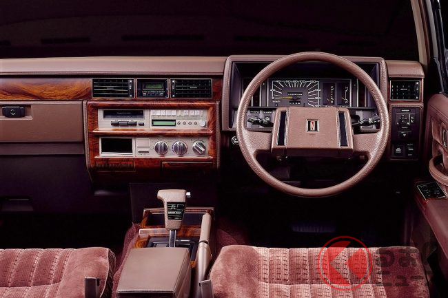 内装もセダンに準じたデザインでしたが3列シートの7人乗りが標準で、後期型では1列目がベンチシートの8人乗りもありました。