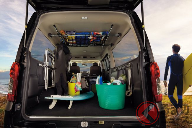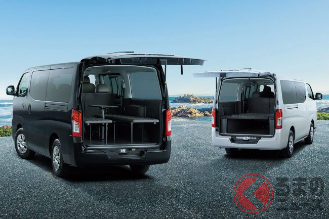 日産の商用バン「キャラバン」には、なんと荷室に収納式のベッドを備えた「キャラバン マルチベッド」がカタログモデルとして設定されています。