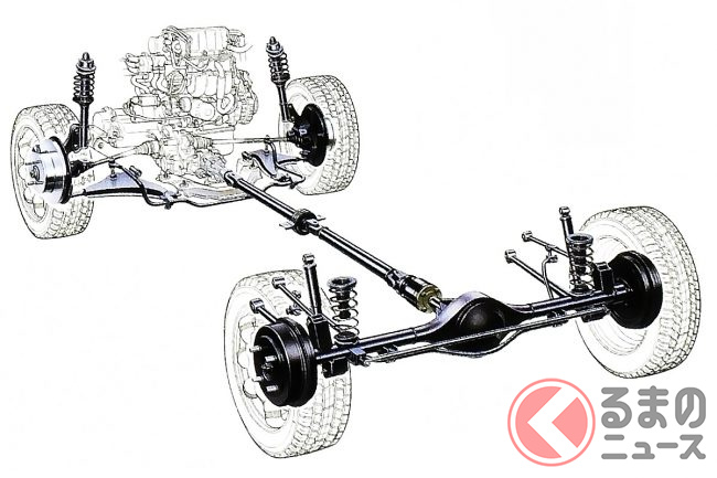 一方、足回りはフロントがストラット、リアが5リンクのリジットアクスルとオーソドックスな形式でしたが、前後にスタビライザーが奢られていました。