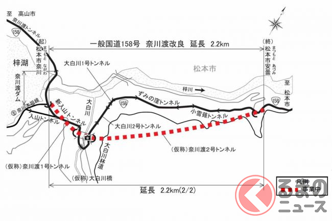 上高地への「バス泣かせ」トンネル4本解消へ 国道158号奈川渡改良で分岐トンネルも改造