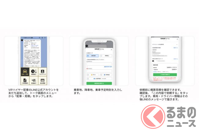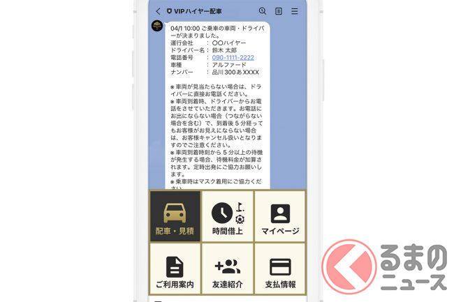 専用アプリをインストールしなくても、LINEで友だち追加をすればすぐに利用可能。お得な空港定額プランに加え、ゴルフや日帰り旅行などの際に便利な時間借上プランなども展開しています。