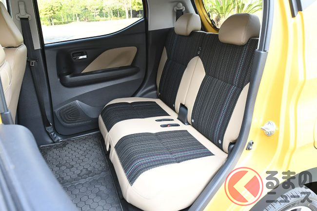 加えて、駆動用バッテリーを薄型化して床下にレイアウトすることによって、クラストップ(全高1700mm以下の軽ハイトワゴンクラス)の後席ニールームを実現。