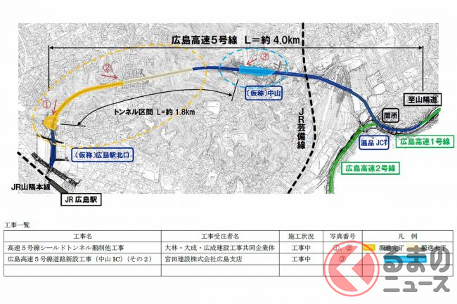 山陽道と広島駅を連絡! 広島高速5号線のシールドトンネル工事が進行中 1・2号線と接続