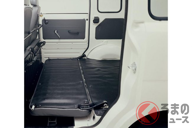 内装ではデスクにもなるフラットなインパネにペンホルダーを装備し、リッドを閉めたまま伝票の投入ができる大きなグローブボックス、折りたためばフラットなフロアとなるリアシートなど、商用車としてのユーティリティを追求していました。