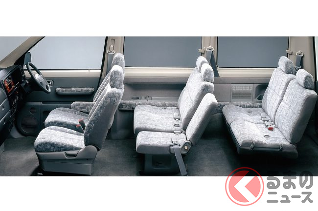 2列シート5人乗りと3列シート8人乗りをラインナップしてシートアレンジも多彩で、3列シート車では2列目シートの回転対座仕様が設定され、さらにダブルベッド並のフルフラット化も可能となっていました。