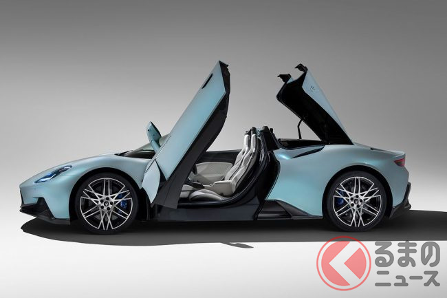 跳ね上げドアがカッコいい! マセラティ「MC20チェロ」世界初公開 最高時速320㎞の最速オープンスーパーカー