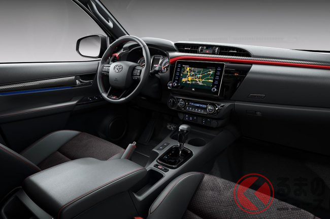 黒パーツで武装したトヨタ「ハイラックス GRスポーツ」がメッチャ強い! 赤内装が刺激的な新仕様 独で登場