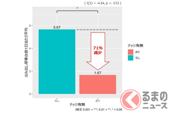 この看板を設置したことで、設置前は違法停車時間の平均が約45分だったのに比べ、看板設置後は約5分と、約9割減少したことが明らかとなりました。