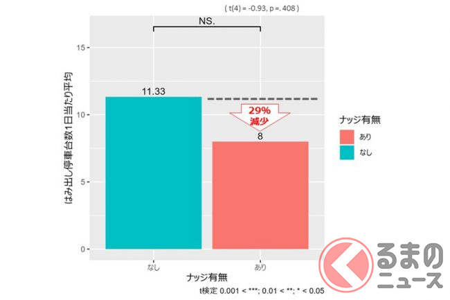 看板設置後は、はみ出し停車台数が西行では約7割、東行では約3割ほど減少。