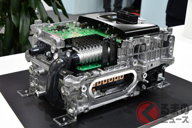 そのなかで展示されていた最新ハイブリッド車両用「電動インバーター」は、従来品より小型化が進められており、車両搭載性が大幅に向上しています。