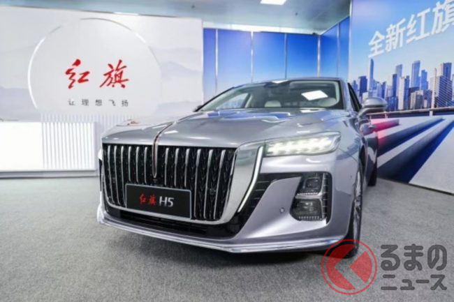 超ド迫力グリルの豪華セダン「紅旗・H5」初公開! 全長5m級レクサス「ES」サイズの内外装がスゴい! 中国で発表