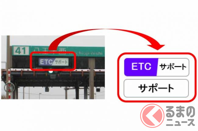 これ以降、ETCを搭載していない車両は利用できません。ETC車載器を設置していなかったり、ETCカードを挿入していなかったりする状態でETC専用料金所に進入した場合は、「ETC/サポート」や「サポート」と表示されたレーンで一旦停止して係員などの指示に従うことになります。