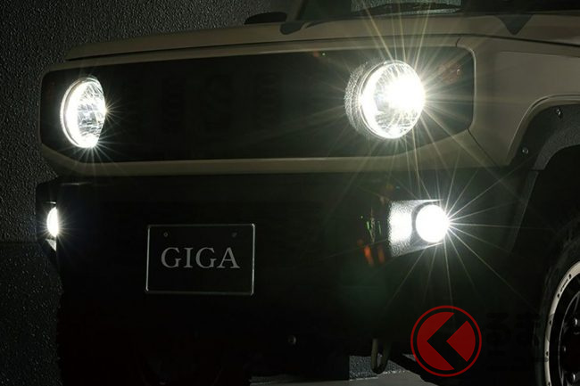 ジムニーの専用設計アクセサリーの開発をおこなってきたカーメイトは、今回のイベントで自動車用ライトブランド「GIGA」と共同出展します。
