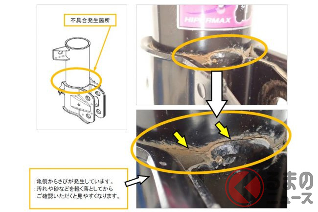 HKSによると、対象製品においてブラケットASSYに亀裂が発生し、最悪の場合、走行不能になる恐れがあるとしています。