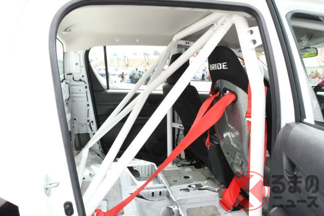 インテリアでは、6点式ロールケージや4点式シートベルト、フルバケットシート、スポーツステアリングを採用。