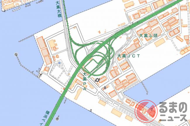高低差を一気に解消する道路の線形のひとつにループ線があります。一周クルリと回る間に坂を上り下りするもので、地図で見ると「の」や「α」の字のような形をしています。