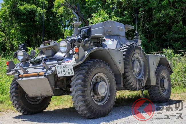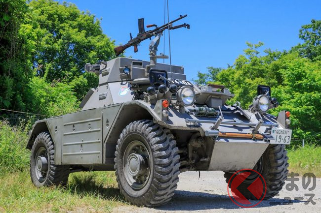 日本で1台しかないといわれる英国装甲車「フェレット」。2022年5月上旬にはコンビニで目撃されたことが大きな話題となりました。どのような特徴あるのでしょうか。
