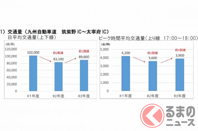 NEXCO西日本は2022年6月8日、九州道の太宰府IC(福岡県太宰府市・大野城市)で実施した渋滞対策の効果を発表しました。