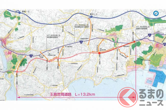 ただしこの一部区間は側道部のみだったり、既存の県道や市道をつなげただけだったりと、あくまで暫定的なものです。