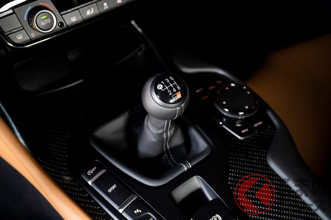 今回、公開されたGRスープラMT仕様の走行イメージでは、ボディ色がグレーで内装色がタン(淡い茶色)の車両が走る様子が写されており、ドライバーがMTシフト操作をする様子も確認できます。