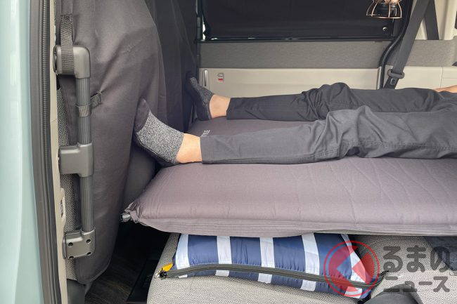 ただし、この状態ではフルフラットになりません。実際に寝そべってみるとシートのデコボコが気になり、一時的に横になることはできても、車中泊として睡眠をとることは少し難しそうです。