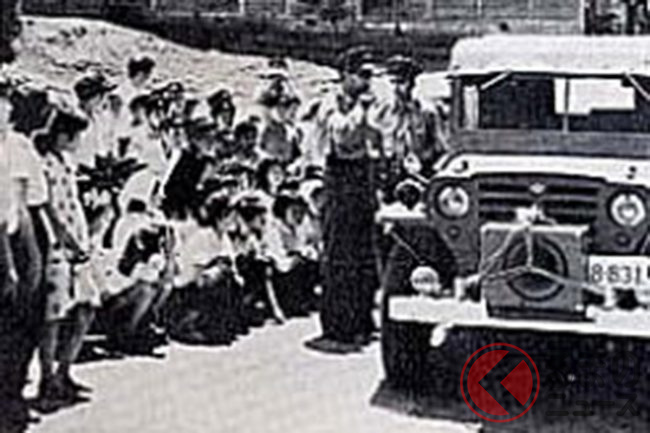 パトカー導入の経緯について、最初のパトカーはアメリカ軍の払い下げのクルマ(オープンカー)でした。