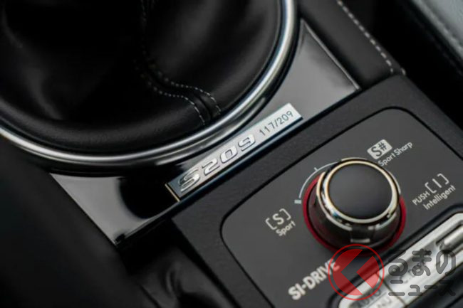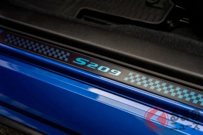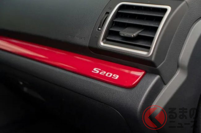 さらに、各所に「S209」のバッジが装着されるとともに、フロントグリルやリアバンパーにチェリーレッドのアクセントが施されています。また内装にも「S209」のロゴが見られ、特別車であることが強調されています。