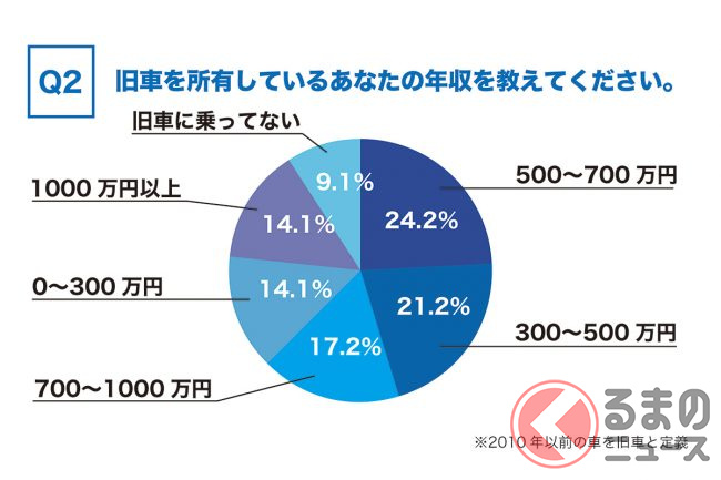調査を見る限り、旧車を所有している人は比較的高所得のようですが、かなりの富裕層というわけでもないようです。