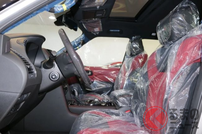 今回発見された個体は、2021年モデルの新車です。エクステリアカラーはパールホワイト、インテリアはブラックとレッドのコンビカラーとなっているほか、22インチの大径アルミホイールと赤いブレーキキャリパーがスポーティさを強調しています。