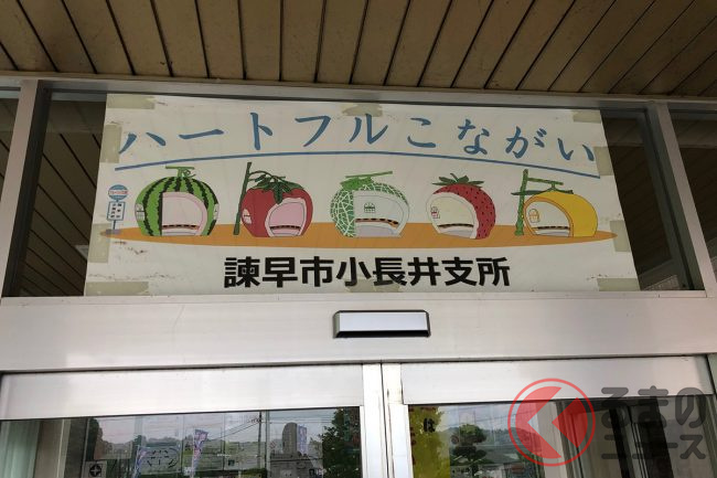それによると、小深井バス停、長戸バス停、小長井支所前バス停、井崎バス停、大久保バス停、築切バス停、釜バス停、阿弥陀崎バス停まで小長井町内の国道207号線沿いや山間部に、メロン、ミカン、トマト、イチゴ、スイカの合計16基(後述のながさき旅ネットによる)のフルーツバス停が設置されています。