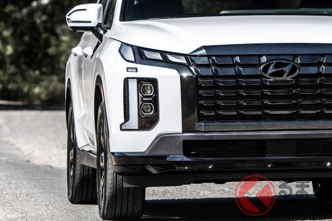 “アルファード風SUV”迫力が進化!? ダーク顔強調の新型「パリセードXRT」世界初公開! 5m級巨体で米国発表
