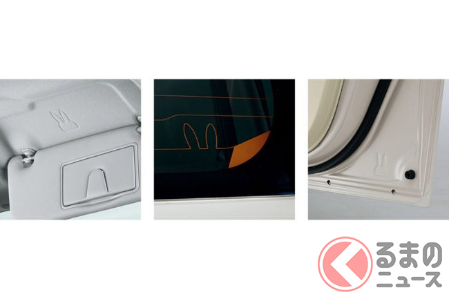 ウサギがあしらわれたフロントグリル内のエンブレムもスモークメッキ塗装になり、ただかわいいだけでない“黒ウサギ”スタイルを表現します。