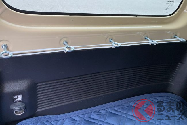 ジムニーの荷室は、2名乗車時で、荷室長980mm×荷室幅1300mm×荷室高850mmとなっており、フルフラットにはできるものの、大人が横たわることを考えると、決してじゅうぶんな広さとはいえません。