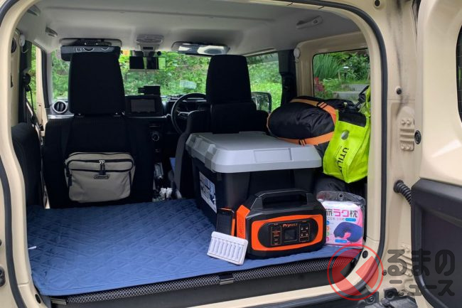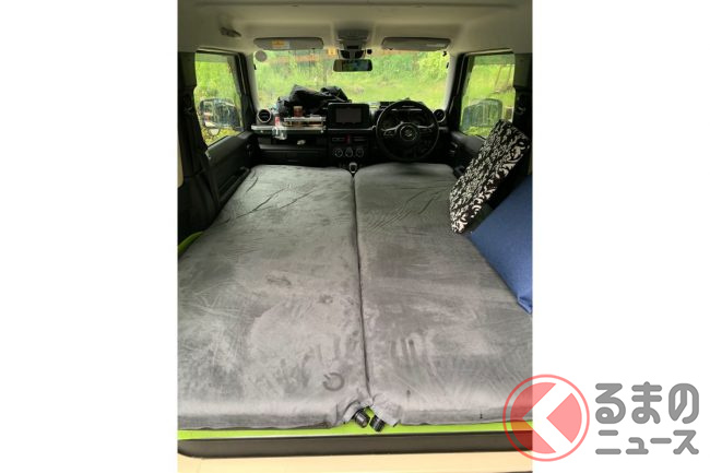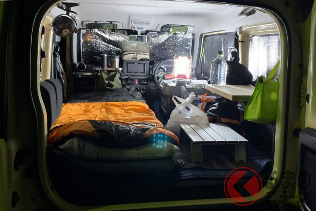 スズキ最強SUVの「車中泊仕様」 オフ顔「ジムニーカスタム」は大人2名もイケる? 快適に過ごす工夫とは