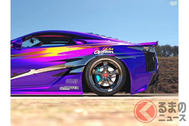 ド派手カスタムがスゴい! 斬新カラーのレクサス「LFA」に驚愕! ドリ車モチーフのレンダリングとは