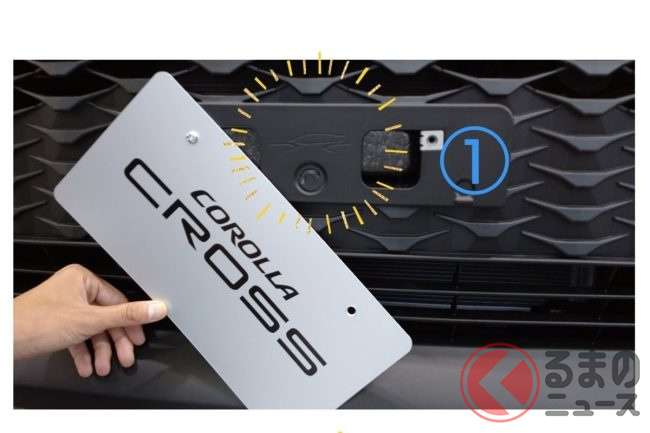 ちなみに、一般ユーザーが見つけるのがもっとも難しいと思われる隠れカローラクロスマークは、フロントマスクの中央「ナンバープレート取り付け台座」に刻まれています。