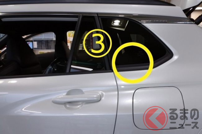 そして、「車体左後ろのクォーターウインドウ」にもひとつ。